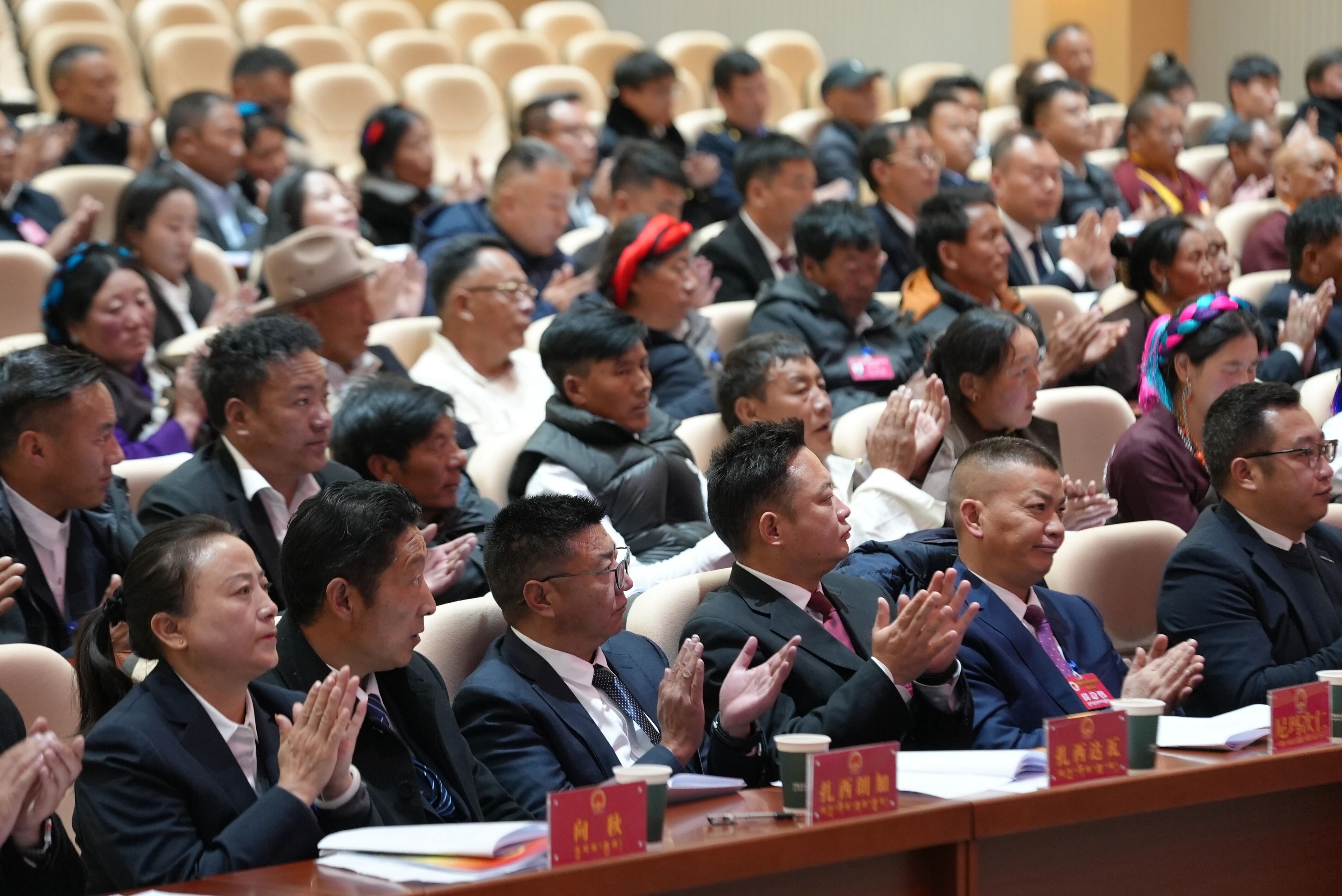 汪正涛、泽旺、张海龙、仁青欧珠在主席台前排就座。