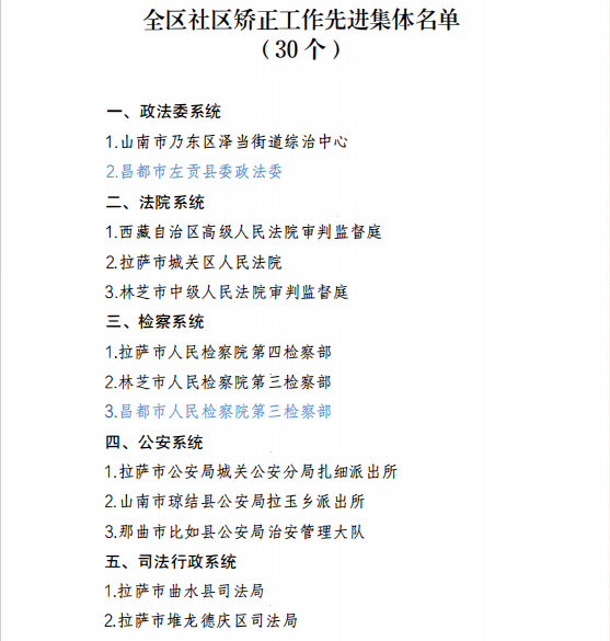 近日,西藏自治区社区矫正委员会决定,授予全区30个集体“全区社区矫正工作先进集体”荣誉称号;授予全区70名同志“全区社区矫正工作先进个人”荣誉称号。其中,昌都4个集体、10名个人获得表彰。