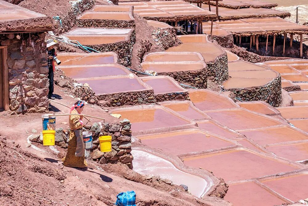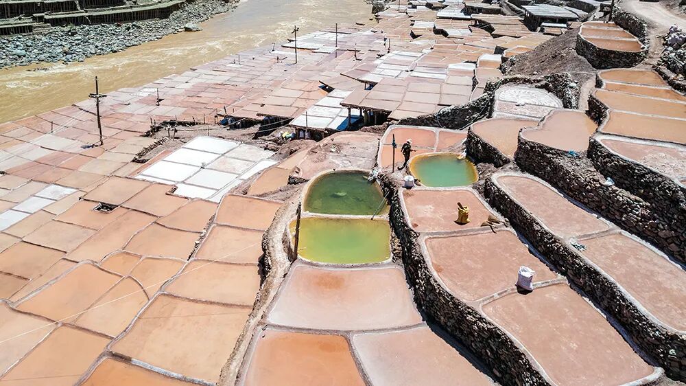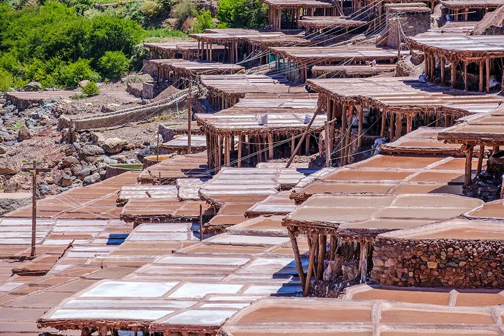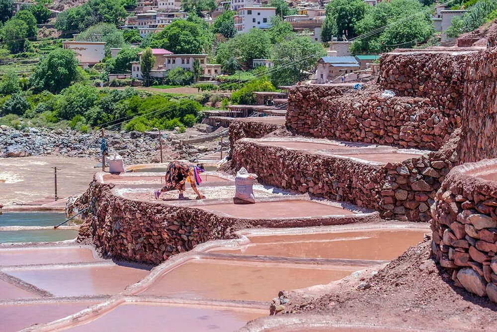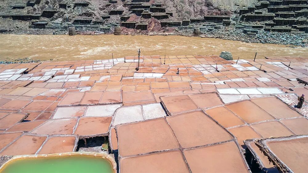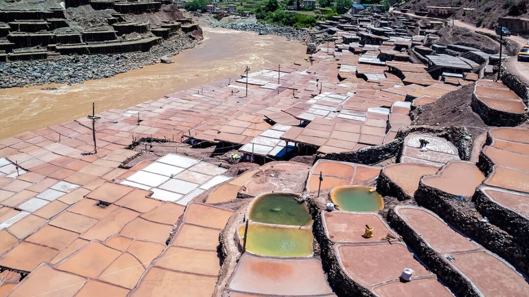 盐田沿江两岸层叠分布,因土壤差异,西岸产淡红色的“桃花盐”,东岸则产纯白的食用盐,景象壮观。这项古老的“井盐晒制技艺”已被列为国家级非物质文化遗产。